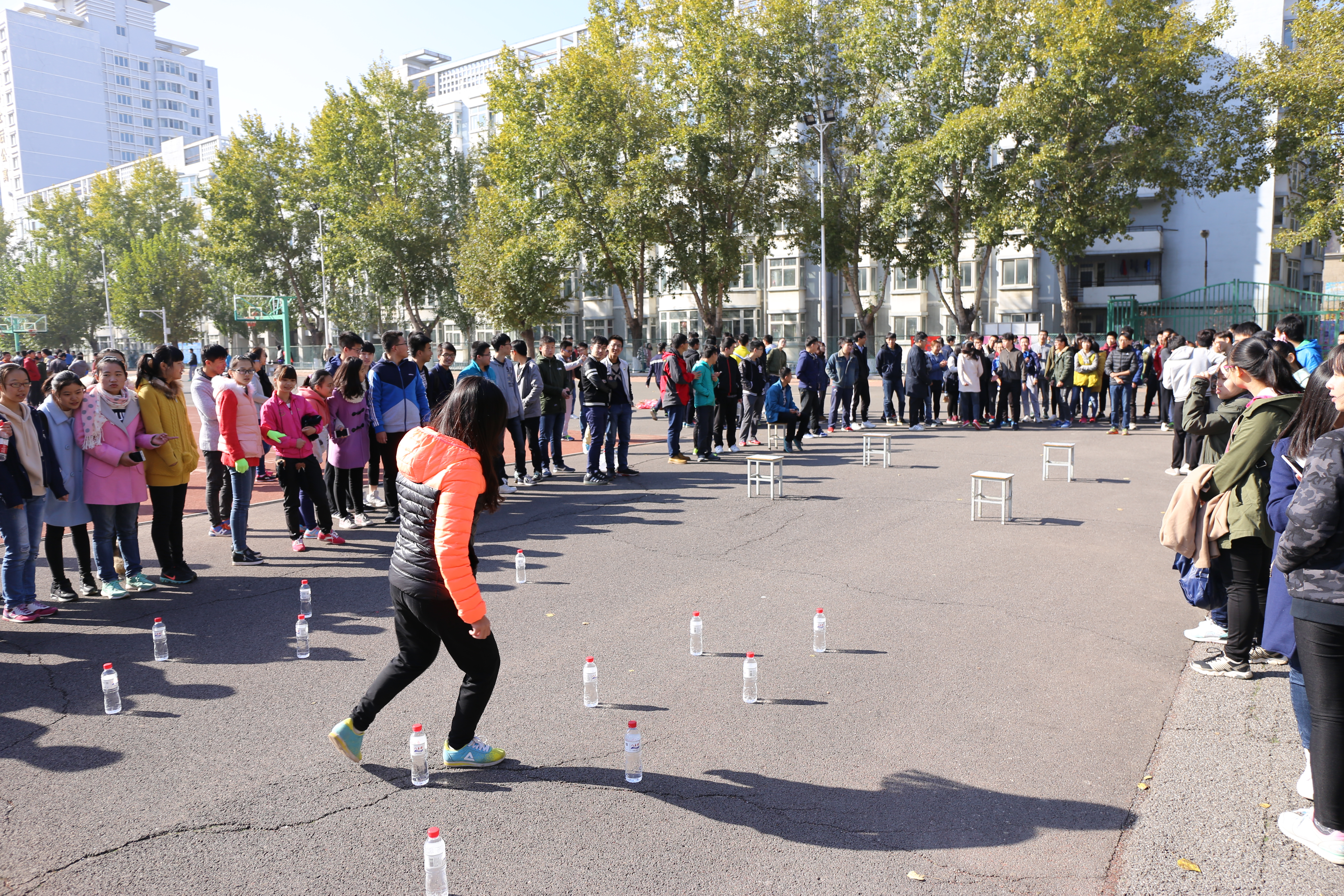 本次运动会共有五个趣味项目,分别是“飞镖夺宝”、“保龄球”、“100米障碍赛”、“跳长绳”和“拔河”。尽管室外寒冷,但广大材料学生们依然兴致盎然,争分夺秒联系比赛项目,认真进行热身赛等赛前准备。