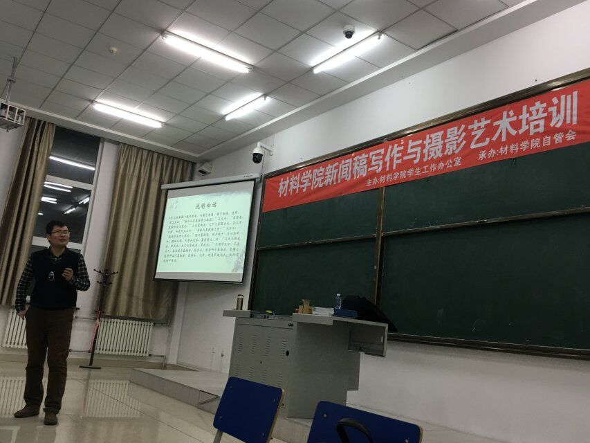 10月27日晚,材料科学与工程学院自管会于大成教学馆举办了新闻写作与摄影培训讲座。学院学生自管会和各年级主要学生干部参加了此次培训。