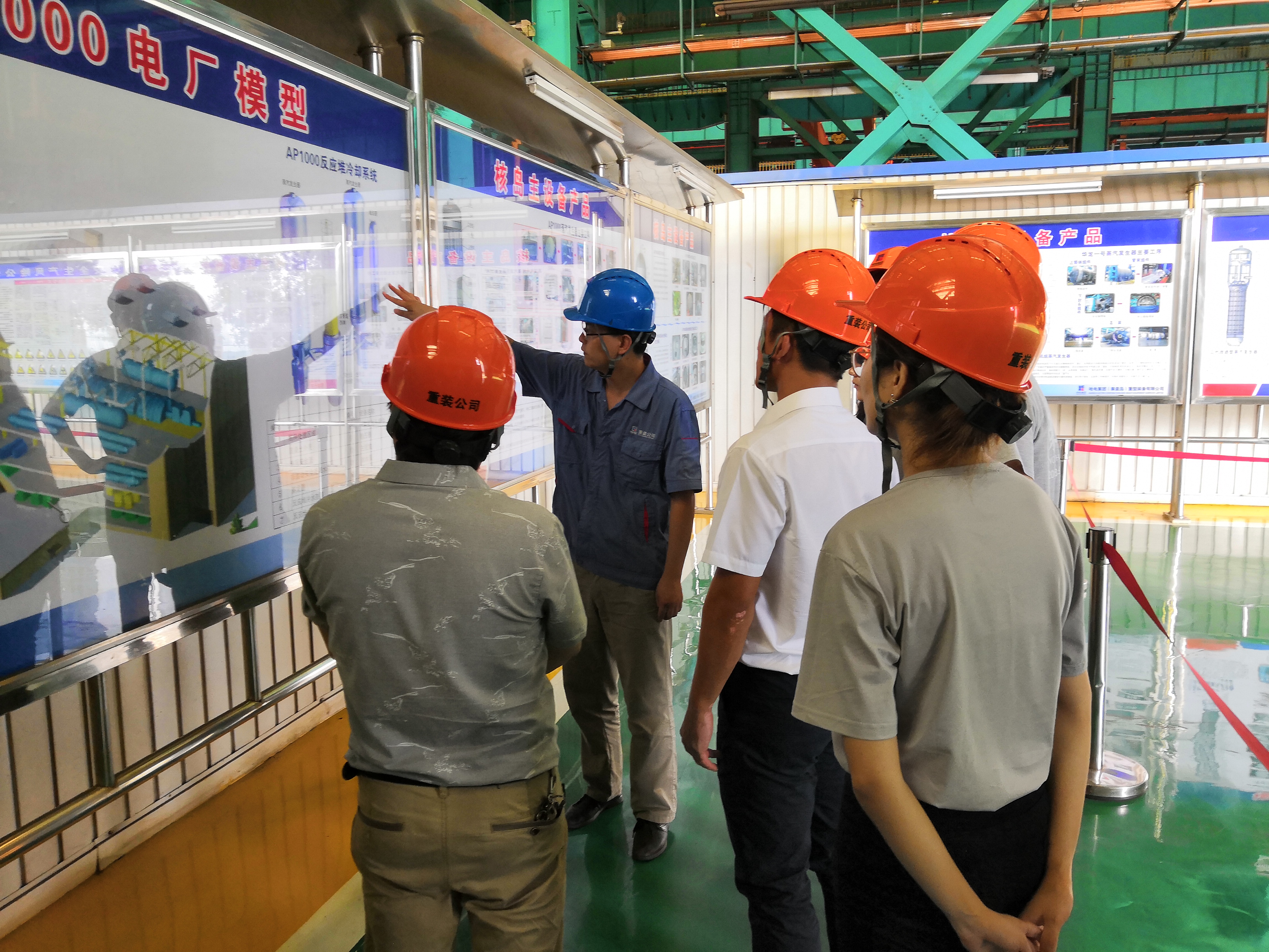 座谈交流后,由车间负责人带队参观生产车间,就企业当前主要生产线华龙一号蒸汽发生器、堆芯补水箱、稳压器进行详细讲解,使实践团全体成员了解到我国自主研发的、具有完整的自主知识产权的先进核电技术。