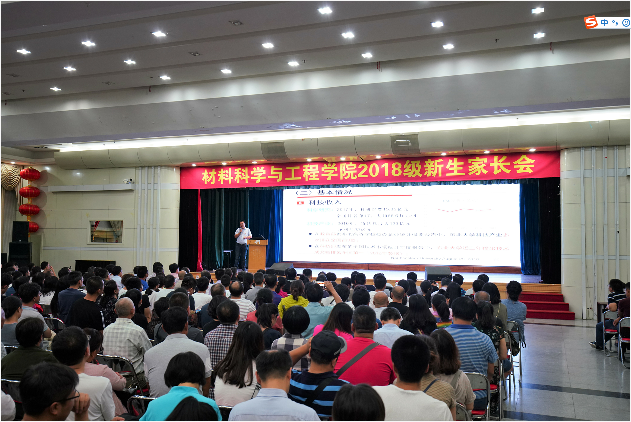 2018年8月29日,在隆重热情、安全有序、温馨幸福、富有文化底蕴的迎新工作氛围中,材料学院于大学生活动中心多功能厅顺利举行2018级新生家长会暨班导师聘任大会。材料学院院长秦高梧,党委书记张玉宝,RAL国家重点实验室副主任刘振宇,副院长蒋敏,副院长祁阳,副院长赵志浩,副书记兼副院长贺翔,学院工会主席王建军,材料加工系主任丁桦,材料物理与化学系主任李小武,材料系副主任申勇峰,2018级新生班导师,学生工作办公室全体老师,2018级新生家长参加本次会议。