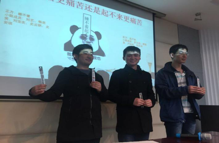 本次辩论赛分为两组,围绕不同的辩题进行辩论。第一组以“大学生党员应该更注重理论学习还是应该更注重实践”为辩题开展了激烈的辩论。正方认为,理论可以指导实践,没有知识的丰富积累无法为社会提供最基本最持久的动力。而反方认为,社会变幻莫测,唯有积极实践,才能够积累足够的经验来指导人生活动。双方辩论有来有回,各执一词,充满了思辨的学术氛围。最后,正方胜出,尚书贤同学荣获最佳辩手。第二组以“睡不着痛苦还是起不来痛苦”为辩题展开辩论,辩手们抓住对方的弱点进行“猛攻”,甚是精彩。经过激烈的角逐,最后反方胜出,畅思笑同学荣膺最佳辩手。两组辩论结束后,材硕1801党支部书记满鑫对此次辩论赛进行了总结并组织大家合影留念。