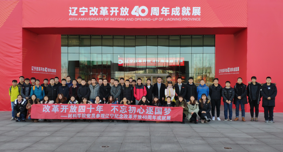 为学习贯彻习近平总书记在庆祝改革开放40周年大会上的重要讲话精神,回望辽宁省自改革开放40年来波澜壮阔的奋进历程,2018年12月20日,材料科学与工程学院组织学生党员参观了由辽宁省委宣传部主办,以“改革开放四十年,不忘初心逐国梦”为主题的辽宁纪念改革开放40周年成就展。材料学院党委组织员商淼及52名党员代表参加了此次活动。
