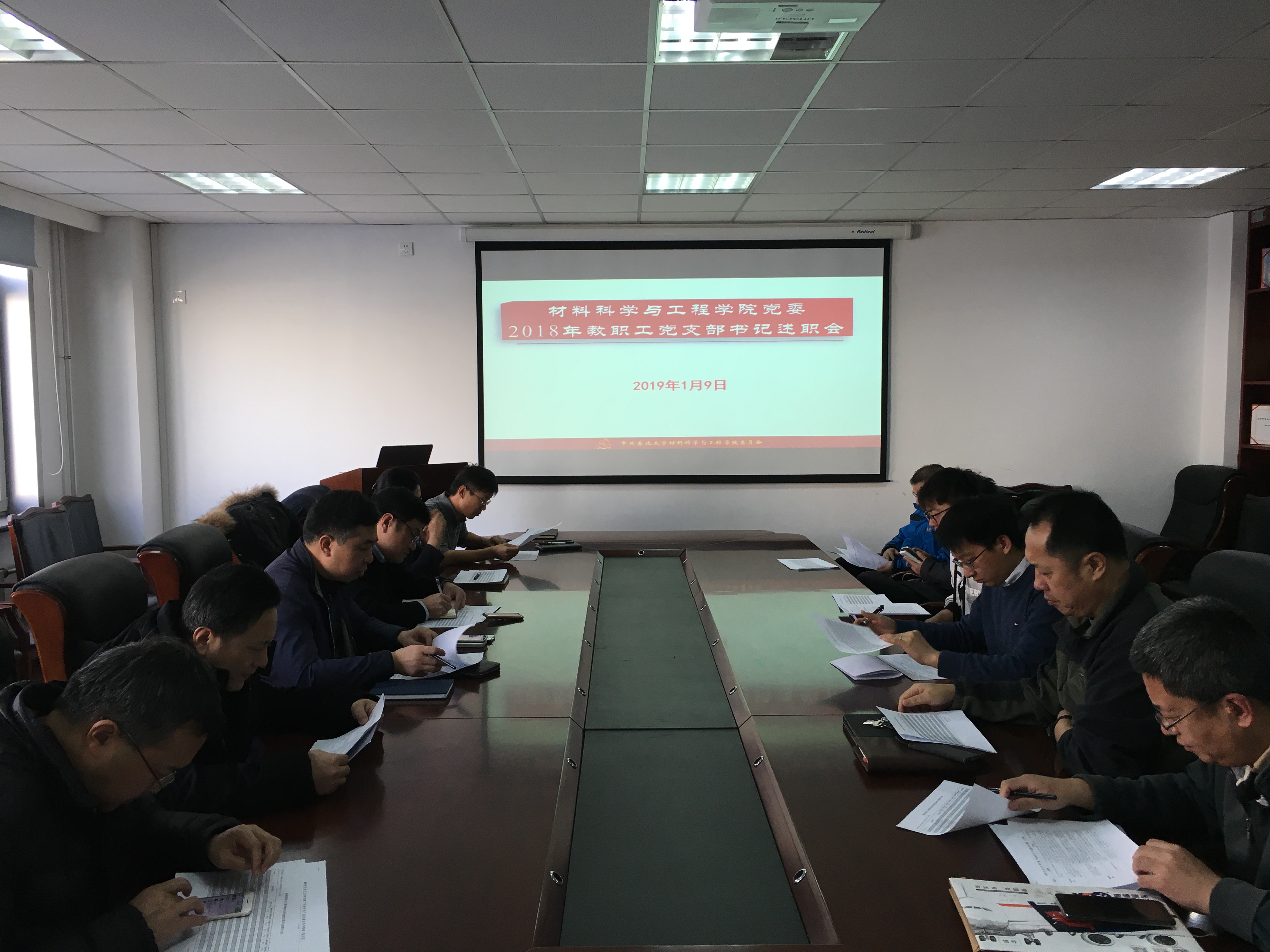 1月9日,材料学院党支部书记述职测评会在知行楼424会议室举行,学院党委委员、各教职工党支部书记参加总结述职测评会。