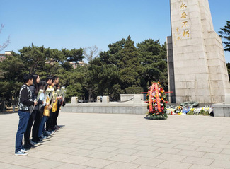 在抗美援朝烈士纪念碑前,支部成员有幸遇到了抗美援朝志愿军的老战士,他对党员同志们提出了殷切的期望,希望年轻一代党员能够坚定共产主义信念,将志愿军的革命精神和爱国情怀继续传承下去。接着,在党支部书记刘瀚钟的带领下,支部成员向烈士纪念碑进献了鲜花。随后刘瀚钟表示,今年第六批在韩志愿军的遗骸经多番努力已回到祖国,并于沈阳抗美援朝烈士陵园集中安葬。这些为国家而献出生命的烈士是作家魏巍笔下最可爱的人,烈士虽已逝去,但他们的精神却在传承中得以永存,处于和平年代的我们不该忘记革命先烈的奋斗精神。