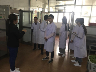 本次活动在食堂阿姨们的热烈掌声中开始,党支部书记巫畅首先代表党支部全体成员向辛勤工作的阿姨们表达了诚挚的敬意与衷心的感谢,并为她们提前送上母亲节祝福。随后,支部成员为食堂阿姨们送上康乃馨,以此表达对阿姨们的祝福,现场气氛十分融洽,阿姨们对同学们送来的祝福十分感动。接下来,食堂督察组负责人向同学们详细介绍了学生城食堂的“6s”管理模式,优越的管理制度以及食堂员工的辛苦付出使得学生城食堂每年都获得食品安全卫生A级标准的好成绩。督察组负责人又带领同学们走进食堂后厨,依次参观了蔬菜清洗区、粗加工区、半成品区、后厨烹饪区、凉菜区等,食堂布局合理,分区明确,同学们对食堂的日常工作有了更加直观的感受