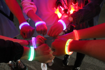 游戏环节主要分为袋鼠跳、掷沙包、巨人脚步三部分,同学们手戴荧光饰品,把所到之处装点成荧光闪耀的欢乐海洋,形成一道靓丽的风景线。活动中同学们挥洒汗水、释放压力,充分展现了材料学子的青春活力,同时活动更吸引了校内其他学院的老师、同学以及小朋友们,纷纷加入到夜跑的队伍中来,最后,每名同学需手持通关卡片进行了抽奖。