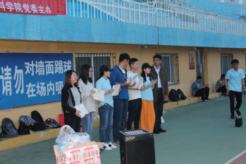 活动开始,举行了“点亮东大,荧光夜跑”线上创意赛颁奖环节,到场嘉宾为朱昊云等五名同学颁发证书和奖品,线上创意赛历时两周,经网络投票最终评选出优秀获奖者5名。颁奖环节后,主持人介绍了荧光夜跑的活动内容与规则,并强调了活动安全及注意事项。起跑指令发出后,200余名同学在领跑学生高举院旗的引领下,伴随着动感的音乐,从五四体育场出发开始夜跑,夜跑队伍绕行至北广场打卡后,由校园北侧返回体育场参与游戏。