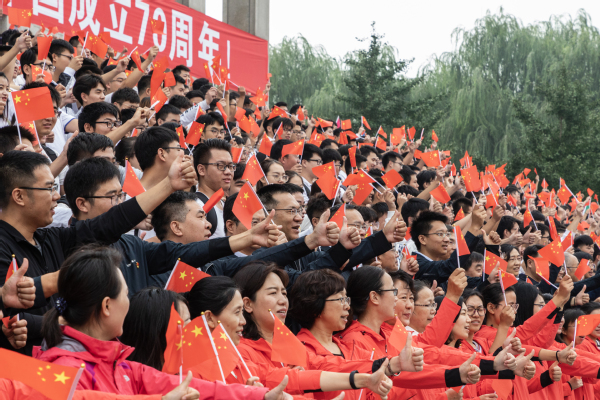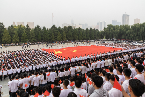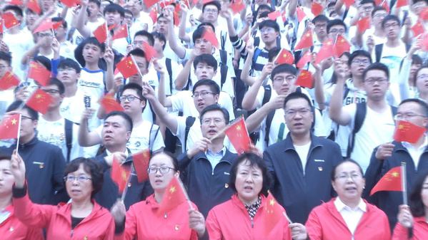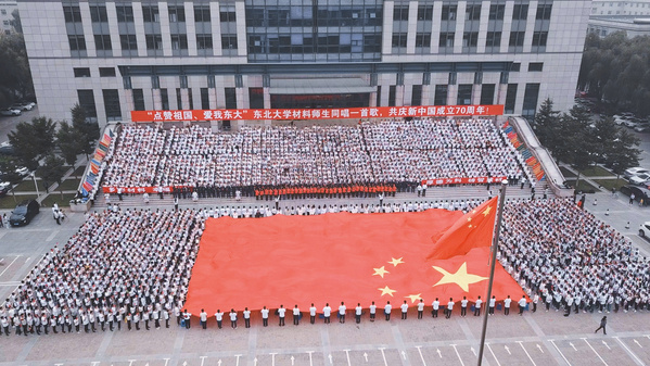 主题教育活动在高昂的国歌中拉开序幕,随后全体师生共同唱响《我和我的祖国》和《雷竞技官方主页校歌》,并跟随旋律摆动国旗,祝福祖国日益繁荣昌盛、国富民强。学院2019级硕士生党员自学手语,表达对祖国祝福和热爱。80名2019级本科生,在知行广场中央跟随旋律抖动长30米、宽近20米五星红旗,将现场气氛推向高潮。活动最后,广大师生用“点赞祖国、爱我东大”材料人共同的心声向祖国母亲告白,回声响彻东大上空。