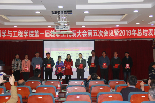 会议展示了2019年度学院教职工获得校级以上奖励情况,并对在学院各项工作中做出积极贡献的教职工进行了表彰。