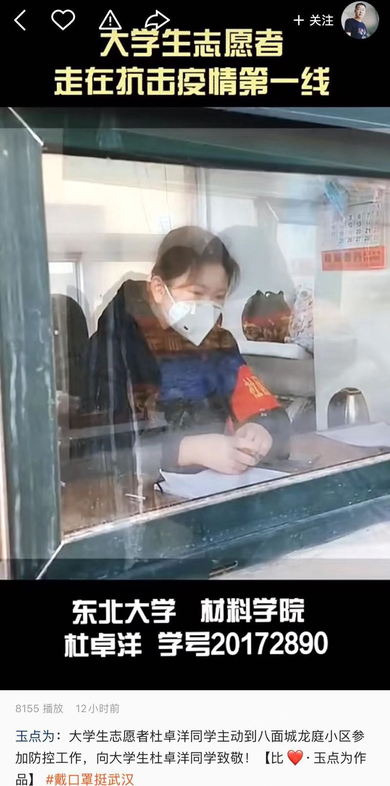 寒假战“疫”期间,材料学院团委开展讲述身边的战“疫”故事活动,将发生在身边的感人故事在线上呈现出来,让温暖、关心与感动在材料学生间传递,引导学生坚定信心,自觉做科学的传播者、谣言的粉碎者、健康的守护者、家庭的关爱者,发出“材料人”的正能量声音。截止目前,共发布《我在湖北,我一切都好!》等7期。