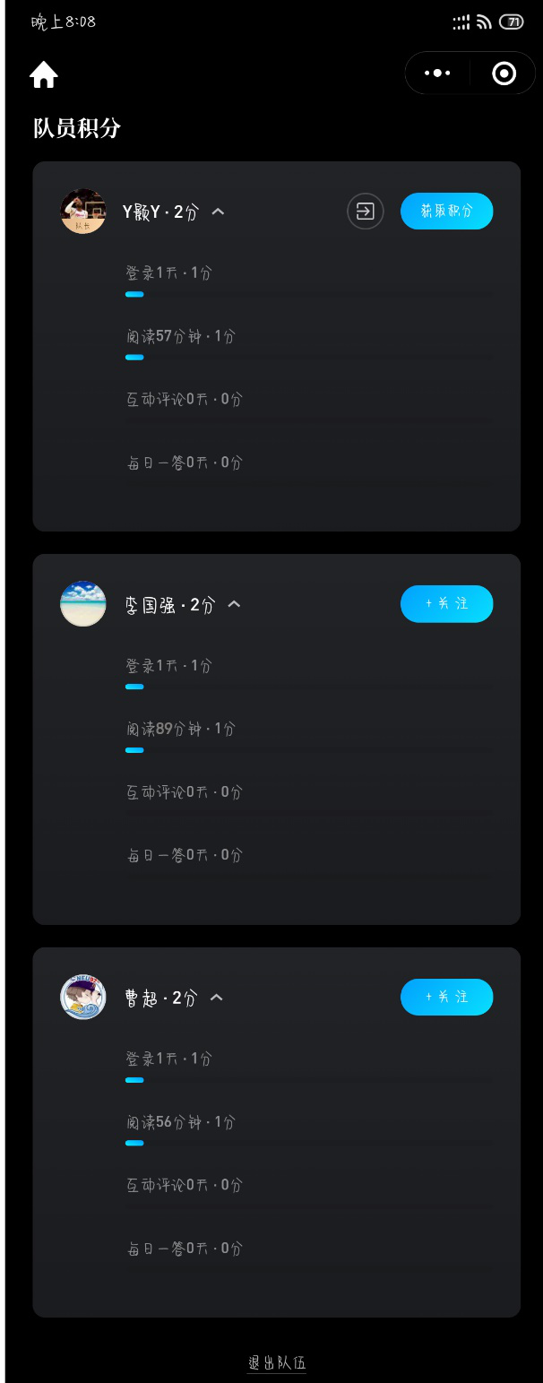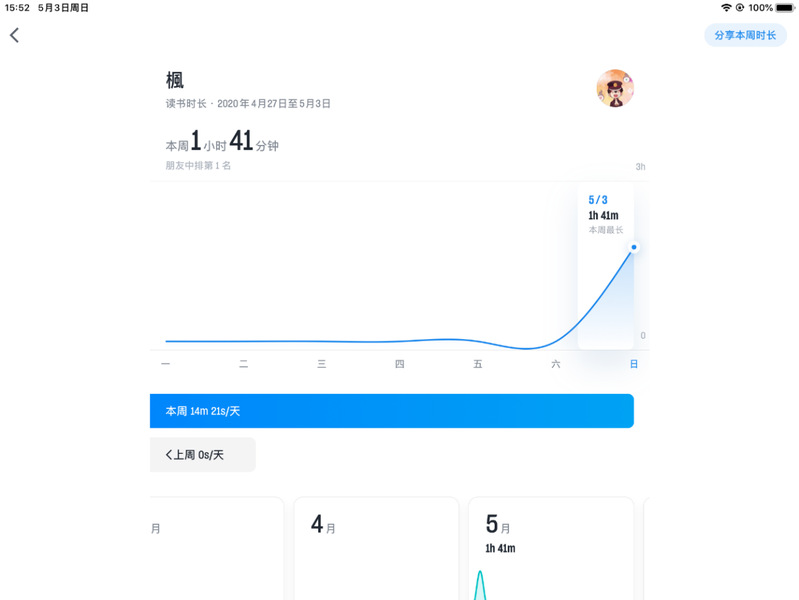 活动采用“微信读书”APP线上进行,各支部同学通过单人或组队的形式在线阅读,要求各小队累计阅读时长为101分钟或是其倍数,以此纪念五四运动101周年。同学们积极响应,以高昂的兴致投入到阅读中,阅读内容包括《五四之魂》、《毛泽东传》、《五四运动史话》等多方面的书籍,同时进行截图打卡记录。共计205组读书小队完成阅读任务,累计时长达20705分钟。阅读活动结束后,同学们都表示,此次线上阅读打卡活动形式新颖,教育意义突出,既是一次阅读活动,也是一次重要的思想教育活动。