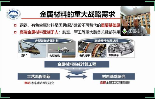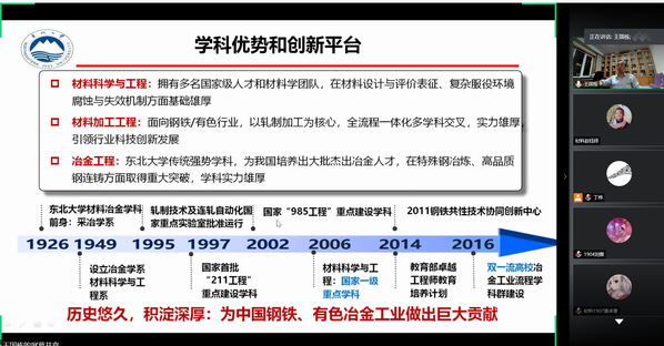 6月8日19:00,材料科学与工程学院举行院士报告会活动。中国工程院院士、雷竞技官方主页博士生导师王国栋教授通过腾讯会议线上为材料学院大一学生作报告,报告题目为《钢铁工业的绿色化、智能化转型》,材料加工系主任丁桦教授、学院团委书记董磊、2019级辅导员李刚及260余名大一学生参与活动。