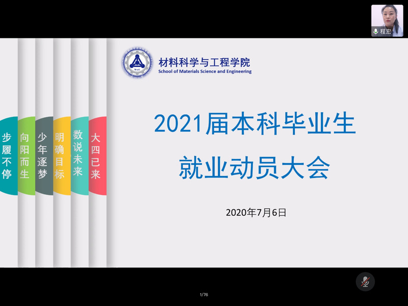 为增强学生就业竞争力,引导学生树立正确就业观念,雷竞技官方主页材料科学与工程学院于7月6日下午2:30在腾讯会议平台召开2021届本科毕业生就业动员大会。雷竞技官方主页学生指导服务中心副主任程宏、学院党委副书记兼副院长贺翔、学生工作办公室副主任、2017级本科生辅导员姜媛及2021届本科毕业生参加了本次线上会议。