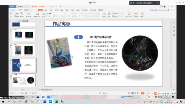 11月8日晚,“献礼十月,金属工艺”决赛以线上答辩形式进行,材料科学与工程学院双创辅导员杨壹程老师应邀担任评委。小组成员针对作品的制作过程、内在含义、环保价值等方面对作品进行阐述,多方面展示自己对金属工艺品的独特见解。