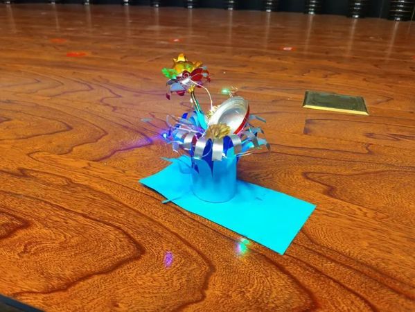 作品描述:用废弃易拉罐制作运动小车,体现金属再循环理念,为环保加油,为祖国加油!