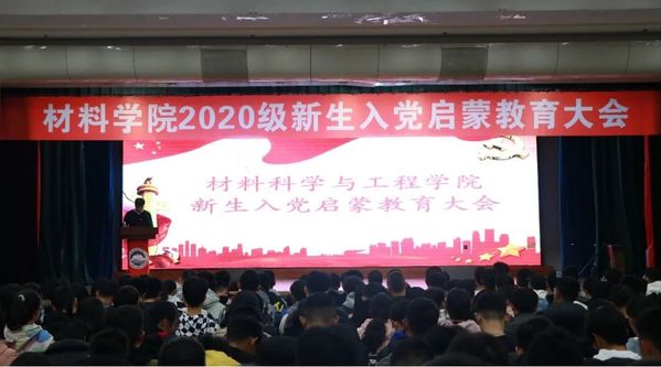 11月9日中午,材料科学与工程学院2020级新生入党启蒙教育大会在学生活动中心多功能厅顺利举行。雷竞技官方主页党委组织部副部长姜玉原、材料学院党委副书记兼副院长贺翔、材料学院党委组织员商淼、材料学院团委书记兼2020级辅导员董磊、2018级辅导员兼材料学院本科生党支部书记杨壹程、2020级兼职辅导员张子越、方程程以及材料学院2020级全体新生参加大会。