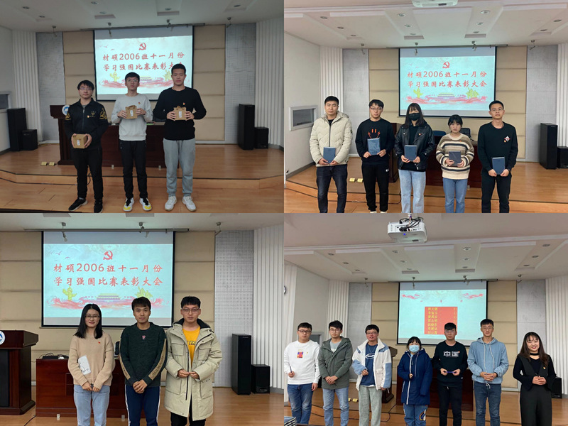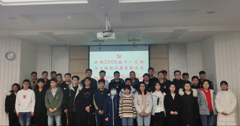 为调动支部成员参与“学习强国”比赛的积极性, 11月26日下午,材料学院硕士2006党支部在大学生活动中心开展“学习强国”比赛颁奖活动,支部全体成员参加此次活动。