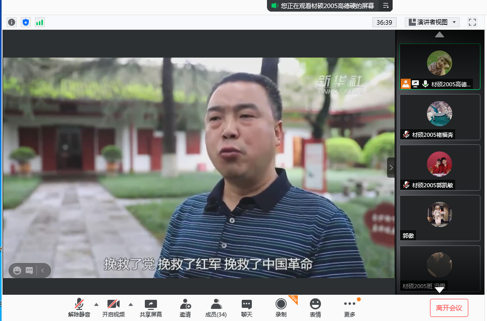 为纪念遵义会议召开86周年,加强支部成员党性修养,1月15日晚,材料学院硕士2005党支部利用腾讯会议组织开展了以“重温遵义会议,传承革命精神”为主题的党日活动,支部全体党员和积极分子参加了此次活动。