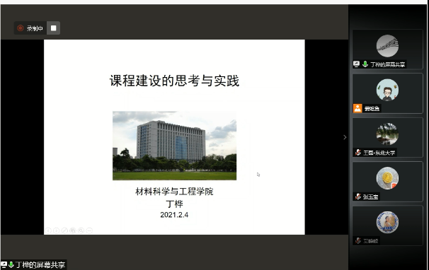 2月4日,材料科学与工程学院召开国家一流课程建设经验交流会,第一批国家级一流本科课程获得者丁桦教授应邀做了题为《课程建设的思考与实践》专题报告,学院院长秦高梧、党委书记张玉宝以及材料学科五十余名教师参加会议,会议由学院本科教学副院长蒋敏主持。