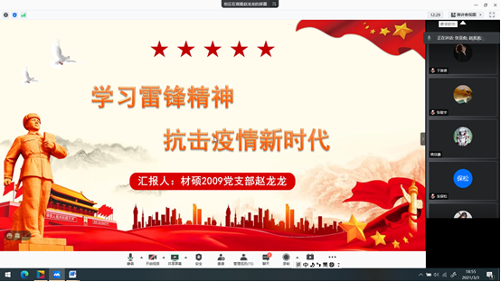 为学习雷锋同志的生平事迹,感悟伟大的雷锋精神,3月3日晚,材料学院硕士2009党支部通过腾讯会议线上召开了以“学习雷锋精神,抗击疫情新时代”为主题的党日活动,支部全体党员和积极分子参加了本次活动。