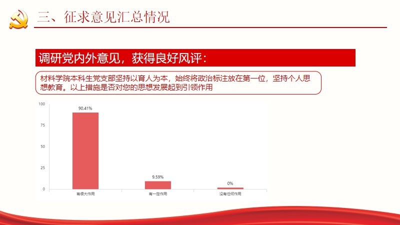 本次组织生活会的成功开展,不但帮助支部成员总结自身存在的问题,而且增强了同学们依靠自身力量解决实际问题的能力,为更好地发挥党支部的战斗堡垒作用打下坚实基础。