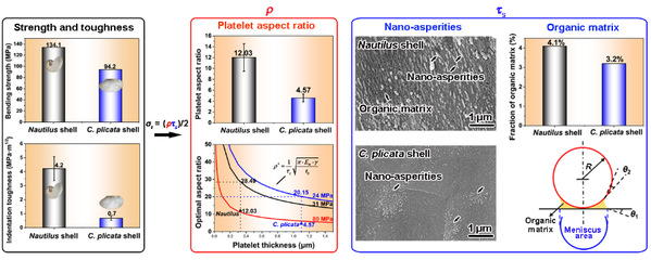 图2 板片几何构型与有机质对珍珠质力学性能的关键作用