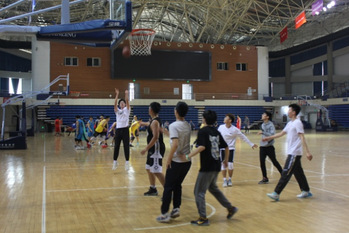 4月1日,参与者于刘长春体育馆篮球场集合,我们很荣幸地邀请到征战cuba赛场的杨泽宇(IFBB运动营养师)、王思洁(2017年cuba东南赛区亚军)、侯森(前雷竞技官方主页男篮队长)、李冬桦(辽宁省省运会男篮亚军)参与本次活动并作为教练指导同学们进行篮球训练。