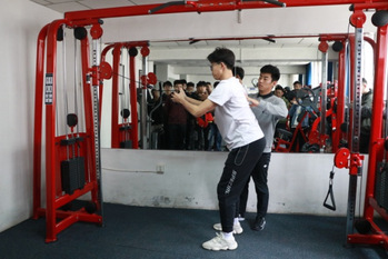 4月2日,本次活动的参与者在五四体育场西三区的器械健美室。体育部硕士兼任2015级足球专项队长的赵建权和曾荣获中欧大学生双板滑雪比赛第五名的苏东阁以及张子越老师参加本次活动。赵建权为我们介绍了有关健身的三大要点,分别从饮食、运动系统和肌浆与肌原纤维等方面详细阐述了健身的目的和注意事项。同学们全神贯注,认真倾听,了解健身的相关知识。