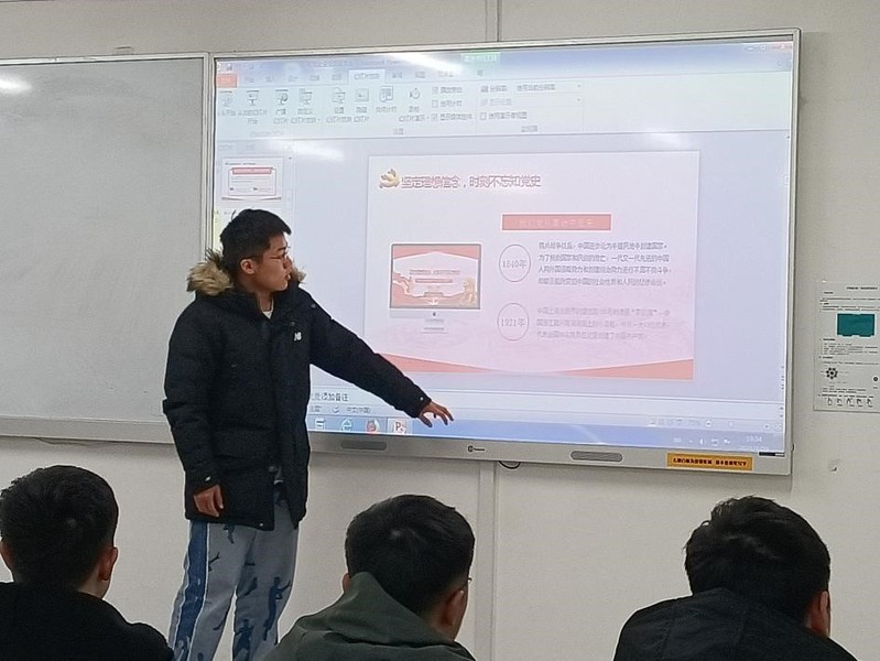 活动伊始,主持人巩政辛以建党100周年为主线,邀请其他三名同学依次从知党史、感党恩、跟党走三个方面全方位、具体化地介绍了中国共产党成立100周年以来走过的坎坷和取得的辉煌。中国共产党从革命中走来,紧紧依靠人民,跨过一道又一道沟坎,取得一个又一个胜利,创造了人类发展史上惊天动地的奇迹。随后积极分子李忠豪从党史人物的感人事迹出发,介绍了老一辈共产党人光辉的事迹,并提倡我们向老一辈共产党人学习艰苦奋斗精神。积极分子王晶锐则通过介绍百年来中国的变化与发展,讲述了中国共产党取得的伟大成果。通过本次学习,同学们纷纷表示被老一辈的共产党人敢闯敢拼的共产党精神所感动,将在今后的学习生活中用实际行动为党旗增添色彩,为祖国的繁荣昌盛贡献自己的力量。