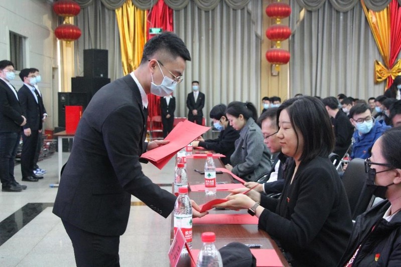 本次换届选举大会由党委组织员商淼主持,大会在庄严的国歌声中拉开帷幕,贺翔代表上一届党总支做工作汇报,总结学院建设和发展实践中取得的主要经验。五年来,材料学院学生党总支在学校、学院党委的领导下,严抓组织制度建设,创新党日活动载体,打造学院党建品牌,党建育人成效凸显,学生党员理论水平、综合素质显著提升,圆满完成了各项工作任务。在2021年,材料学院学生党总支将在“学党史、悟思想、办实事、开新局”的思想引领下,持续开展品牌活动、继续发挥组织优势,争当“头牛”向前“犇”,以伟大精神开启新征程,以机遇意识把握新征程,以担当实干迈步新征程,以昂扬姿态奋力向前。