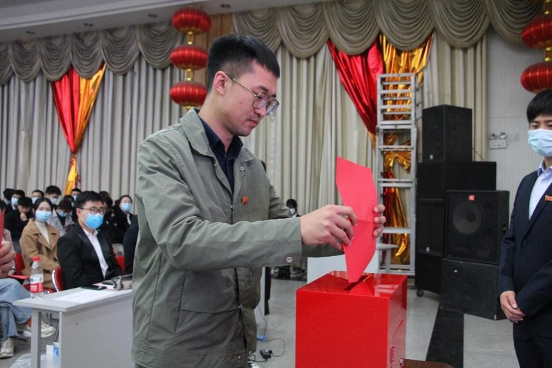 随后,大会按照换届选举程序,经学院党委三次酝酿提名和各学生党支部三次补充提名通过候选人产生办法、候选人名单和监票人、计票人名单。大会严格按照党章规定的选举办法和选举程序,坚持公平、公开、公正的原则进行无记名投票。在统计选票期间,大会进行“领航计划”精准扶困工程颁奖典礼,授予李天昊等24名同学“领航计划思想引领之星”等荣誉称号。最后,根据选票结果差额选出贺翔等7名同志组成党总支新一届委员会。