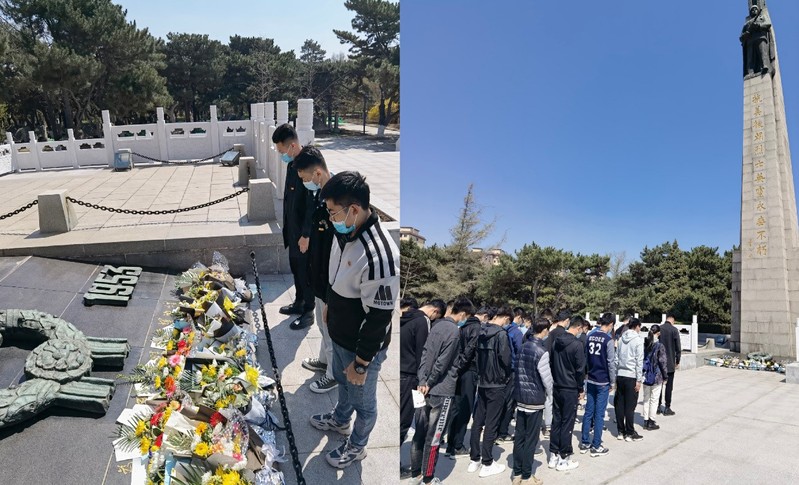 在纪念碑前,硕士2009党支部书记赵龙龙带领全体成员进行默哀仪式,并由支部代表向革命烈士敬献花束,同学们都怀揣深深的敬意向抗美援朝战争中牺牲的英雄战士们默哀悼念。默哀过后,硕士2007党支部书记牛宁涛带领大家重温入党誓词,让同学们进一步增强历史使命感,不断激励自己不畏艰险、奋勇向前。随后,硕士2006党支部书记胡阳带领同学们参观了抗美援朝纪念馆,向同学们详细地介绍了烈士们的英勇事迹,同学们也纷纷在留言板上表达对英烈们的哀悼和致敬,他们表示要学习伟大的抗美援朝精神,积极承担起复兴伟大中国梦的历史重担。