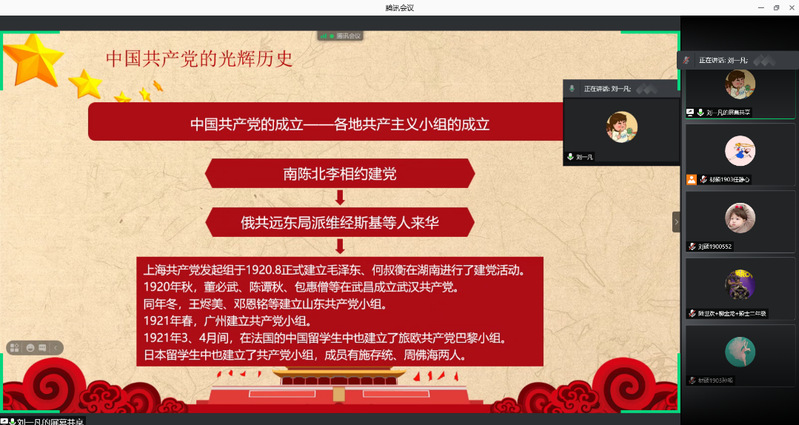 为庆祝建党100周年,持续推进党史学习教育工作,5月20日,材料学院硕士1903党支部线上开展了以“讲党课,学党史,强党性”为主题的主题党课,支部全体成员参加此次活动。