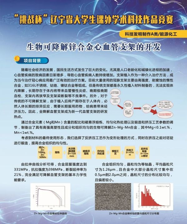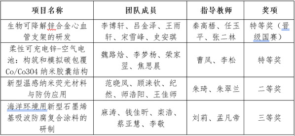 我院由秦高梧、任玉平、张二林老师指导,李博轩等申报的作品《生物可降解锌合金心血管支架的研发》成功晋级国赛,雷竞技官方主页共6件。