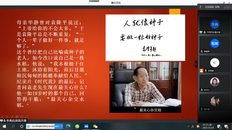 为了深切缅怀袁隆平院士,加深支部成员对其伟大事迹的了解,5月24日,材料学院硕士2002党支部线上举行了以“禾下乘凉梦,一梦便一生”为主题的缅怀活动,支部全体党员及积极分子参加此次活动。