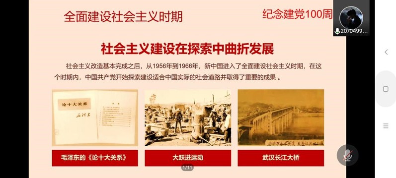 此次主题党课活动的成功举办,不仅使支部成员进一步了解了新中国发展建设时期的艰难探索过程,也让同学们深刻感悟到了这段历史征程中共产党人的初心和使命,明确了新时代青年人身上所担负的责任与担当,为支部进一步开展党史学习教育奠定了良好的基础。