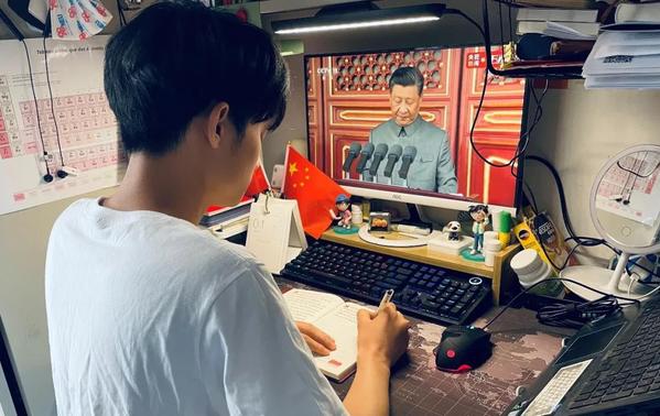庆祝中国共产党成立100周年大会7月1日上午在北京天安门广场隆重举行。中共中央总书记、国家主席、中央军委主席习近平发表重要讲话。材料科学与工程学院团委组织青年学生集中和个人收看庆祝中国共产党成立100周年大会直播,学习热议习近平总书记全程讲话精神。