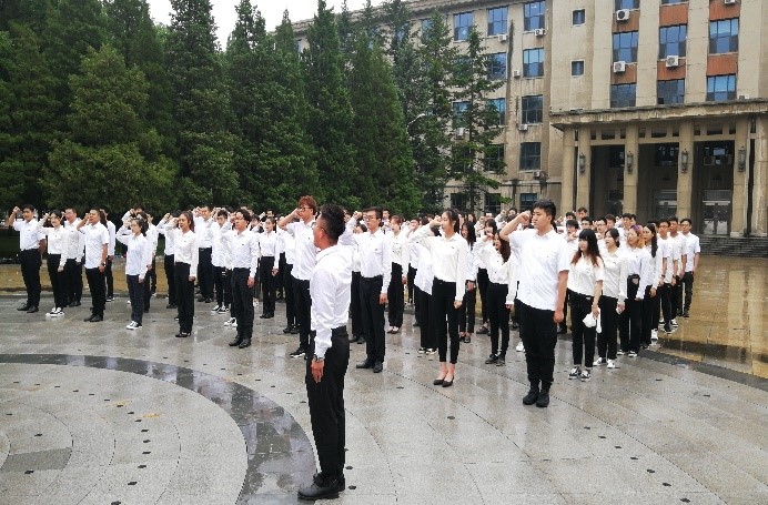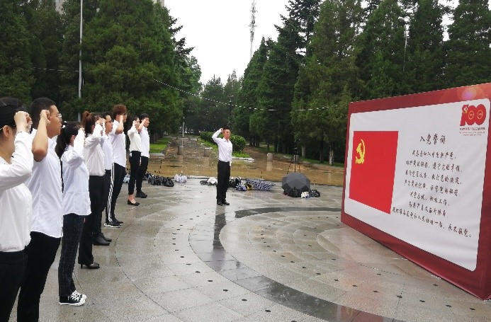 为庆祝中国共产党成立100周年,增强党组织凝聚力,提高党员党性修养,6月27日上午,材料学院2020级硕士生党员在信息楼北广场举行以“重温入党誓词,坚定理想信念”为主题的重温入党誓词活动,各支部党员参加此次活动。