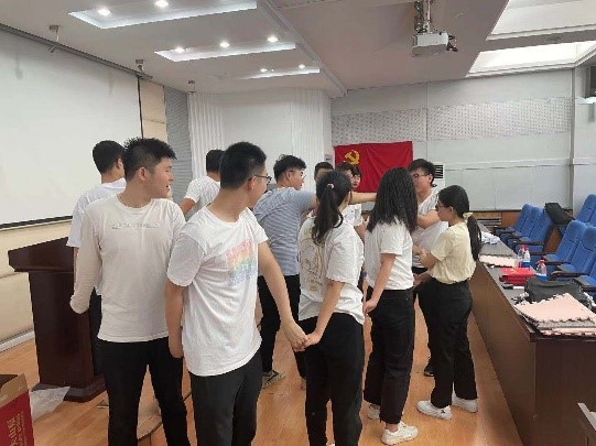 活动开始,党员代表孙才翔首先介绍了本次党日活动的主要内容,其中包括了“九宫格”、“解手链”等趣味活动,同学们在运动中发扬了团结拼搏、互帮互助的精神,增强了团队意识和彼此之间的协作。趣味活动结束后,支部委员会成员为每位党员赠送了政治生日贺卡,并表示每位党员都要时刻牢记党员身份,永葆党员本色。同学们纷纷表示,在建党100周年之际收到政治生日贺卡,更加深刻认识到身为一名党员的责任和使命。活动最后,全体党员来到综合楼北广场重温入党誓词,在领誓人梅亦洵的带领下,党员们面向党旗庄严宣誓。