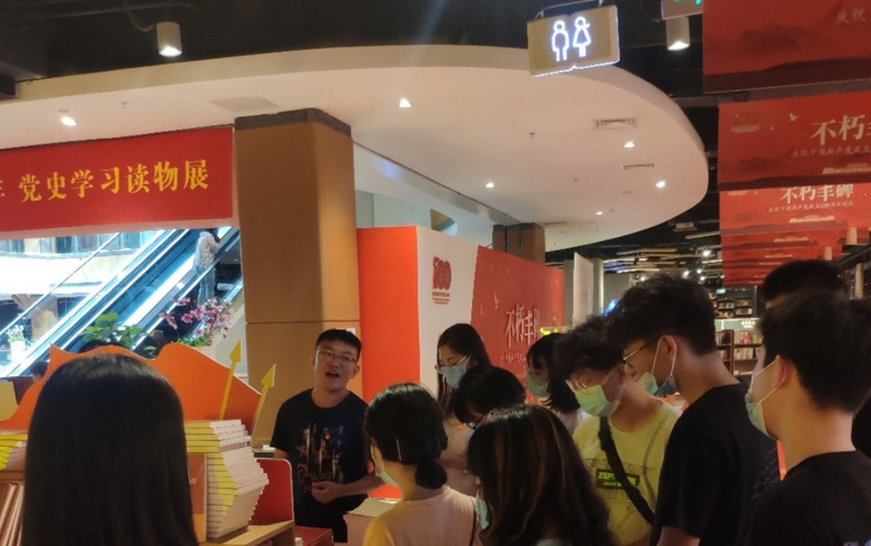 本次活动在玖伍文化城党建书店开展。活动伊始,硕士2006党支部书记孔姝婷向大家介绍了书店的基本情况和党建书籍及陈设布置。随后,硕士1906党支部书记皇甫顥通过店内的党史重大事件时间轴,从风起云涌、攻坚克难、行德致远三个阶段带领大家重温了百年党史,同学们则自行选取感兴趣的党史书籍进行研读。活动结束后,同学们纷纷表示有中国共产党的坚强领导,有全党全国各族人民的紧密团结,全面建成社会主义现代化强国的目标一定能够实现,中华民族伟大复兴的中国梦一定能够实现。