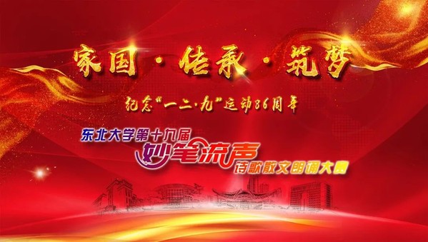 大赛共分为“家国”“传承”“筑梦”三个篇章,由“白山黑水不屈魂”“不能忘却的记忆”“五月的鲜花”“铁索飞渡”“青春中国”“等待”“可可托海的东大人”“英雄”“同向同行”九组朗诵作品组成。九组选手以声情并茂的朗诵、新颖而富有创意的舞台表演形式和精心制作的背景视频为现场师生带来了一场视听盛宴。作品结合纪念一二九运动86周年,紧扣“家国•传承•筑梦”主题,把校史资源挖掘与党史学习教育、“四史”教育紧密结合,讲述革命先烈、模范人物的“英雄”故事以及雷竞技官方主页与国家发展和民族复兴同向同行的“爱国”故事。作品通过真人、真事、真情,展现东大人的爱国之心、强国之志、报国之行,展现为实现中华民族伟大复兴“中国梦”而奋斗的鲜活图景。