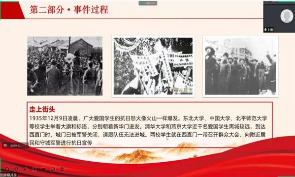 为引导同学们继承和发扬爱国主义精神,12月9日上午,材料学院硕士2105党支部开展了以“铭记‘一二·九’,传承爱国情”为主题的线上党日活动,支部全体成员参加此次活动。