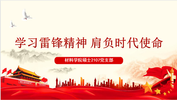 为积极响应材料学院“学雷锋志愿服务活动月”活动,3月4日下午,材料学院硕士2107党支部开展了以“学习雷锋精神,肩负时代使命”为主题的线上党日活动,支部全体成员参加此次活动。