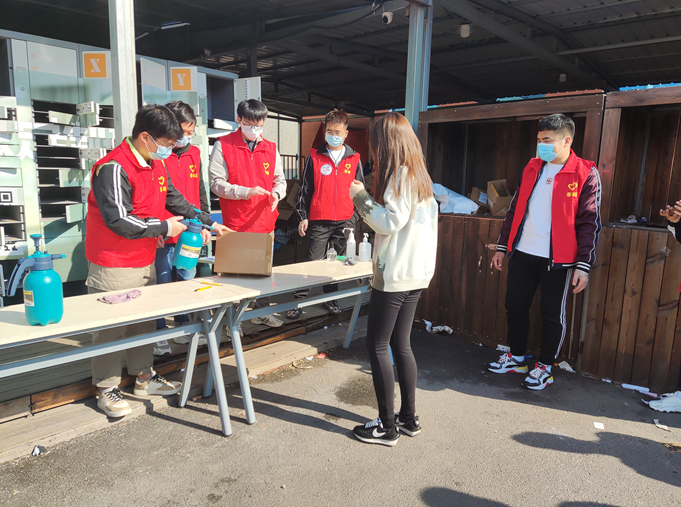 “抗疫有我” 筑牢战斗堡垒 自学校封闭管理以来,疫情防控工作是学校日常工作的重中之重,“春晖”学生党员志愿服务队积极投入防疫一线,用实际行动践行党员的责任与担当,让党旗在疫情防控一线高高飘扬。核酸检测现场、图书馆、食堂门口等师生活动场所,志愿者为师生分发应急口罩,提醒未规范佩戴口罩的师生正确佩戴;近邻宝快递服务中心有序恢复快递业务,“春晖”学生党员志愿服务队第一时间组织志愿者参与快件消杀工作。“春晖”学生党员志愿服务队积极响应号召,助力学校、学院各方面工作顺利开展,筑牢校园疫情防控屏障。