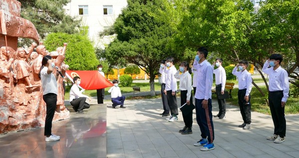 入团仪式在中国共青团团歌《光荣啊,中国共青团》歌声中结束。