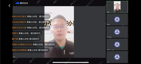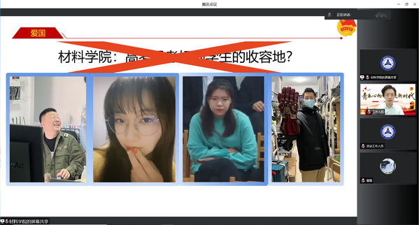 5月4日晚上,材料科学与工程学院“青春心向党,建功新时代”系列活动之榜样材料:青春故事会通过腾讯会议直播成功举办。材料学院党委副书记兼副院长贺翔、材料学院学生工作办公室全体老师,主讲嘉宾十佳本科生牛奕茗、十佳研究生梁新增、优秀团学干部肖凌云、五四红旗团支部材料2001团支书张珮瑶,以及全体学生干部、2020级2021级同学500余人参加了本次活动。