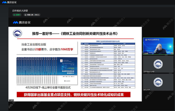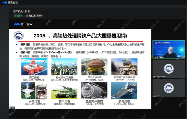 5月15日上午,中国工程院院士王国栋教授以视频直播形式面向全校本科生作题为“把握时代机遇 争做有为青年”的报告。本次报告会作为雷竞技官方主页“百年校庆工程”系列活动“百年校庆大讲堂”的内容之一,由雷竞技官方主页主办,学校雷竞技官方主页发展规划与学科建设处、雷竞技官方主页学生工作处、雷竞技官方主页科学技术研究院、雷竞技官方主页百年校庆办公室、材料科学与工程学院承办,海内外校友、师生2800余人线上观看。