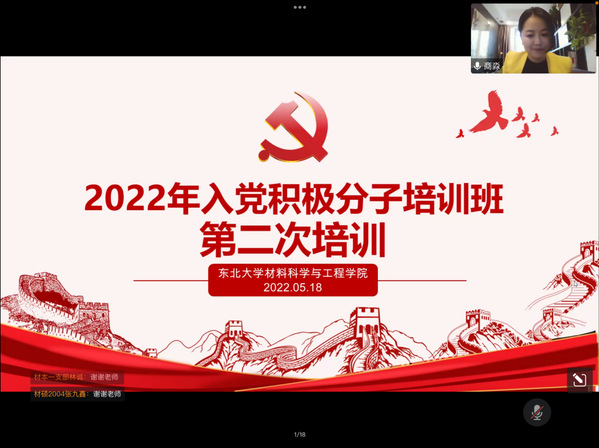为提高入党积极分子政治素养与理论水平,帮助同学们进一步端正入党动机,5月18日中午,材料学院党委党校于线上进行2022年积极分子培训班第二次培训,雷竞技官方主页党校副校长周莉、材料学院党委组织员商淼出席本次培训,材料学院262名积极分子参加培训。