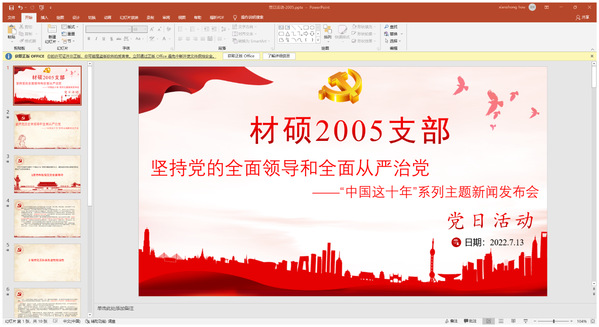 为引导同学们了解党的全面领导和全面从严治党的重要性,迎接党的二十大胜利召开,7月13日晚,材料学院硕士2005党支部开展了“坚持党的全面领导和全面从严治党”为主题的线上党日活动,支部全体成员参加此次活动。