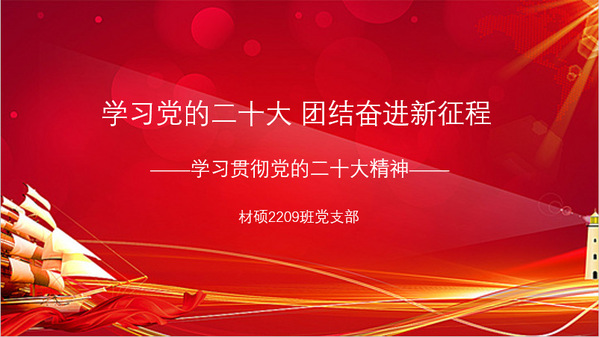 为了深入学习贯彻党的二十大精神,进一步增强支部成员的党性修养,11月6日中午,材料学院硕士2209党支部于线上开展了以“学习党的二十大,团结奋进新征程”为主题的党日活动,支部全体成员参加此次活动。